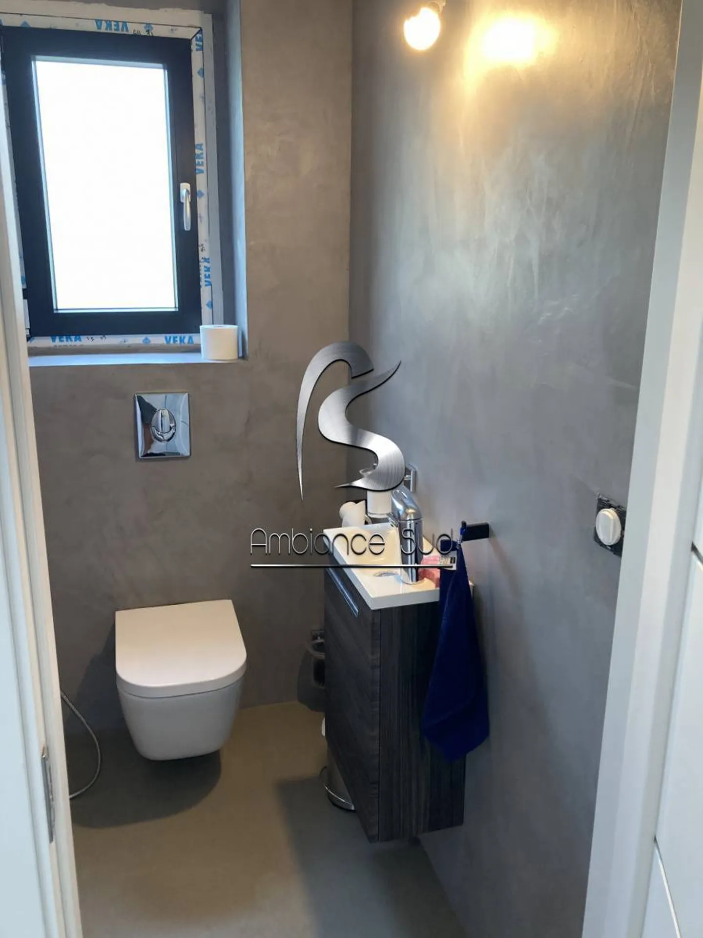 Ambiance Sud, applicateur expérimenté avec plus de 10 années d’expérience en béton ciré en région PACA, dont le département du Var 83, vous présente une rénovation complète des murs en béton ciré taloché pour une résidence de particulier à Roquebrune sur Argens.
