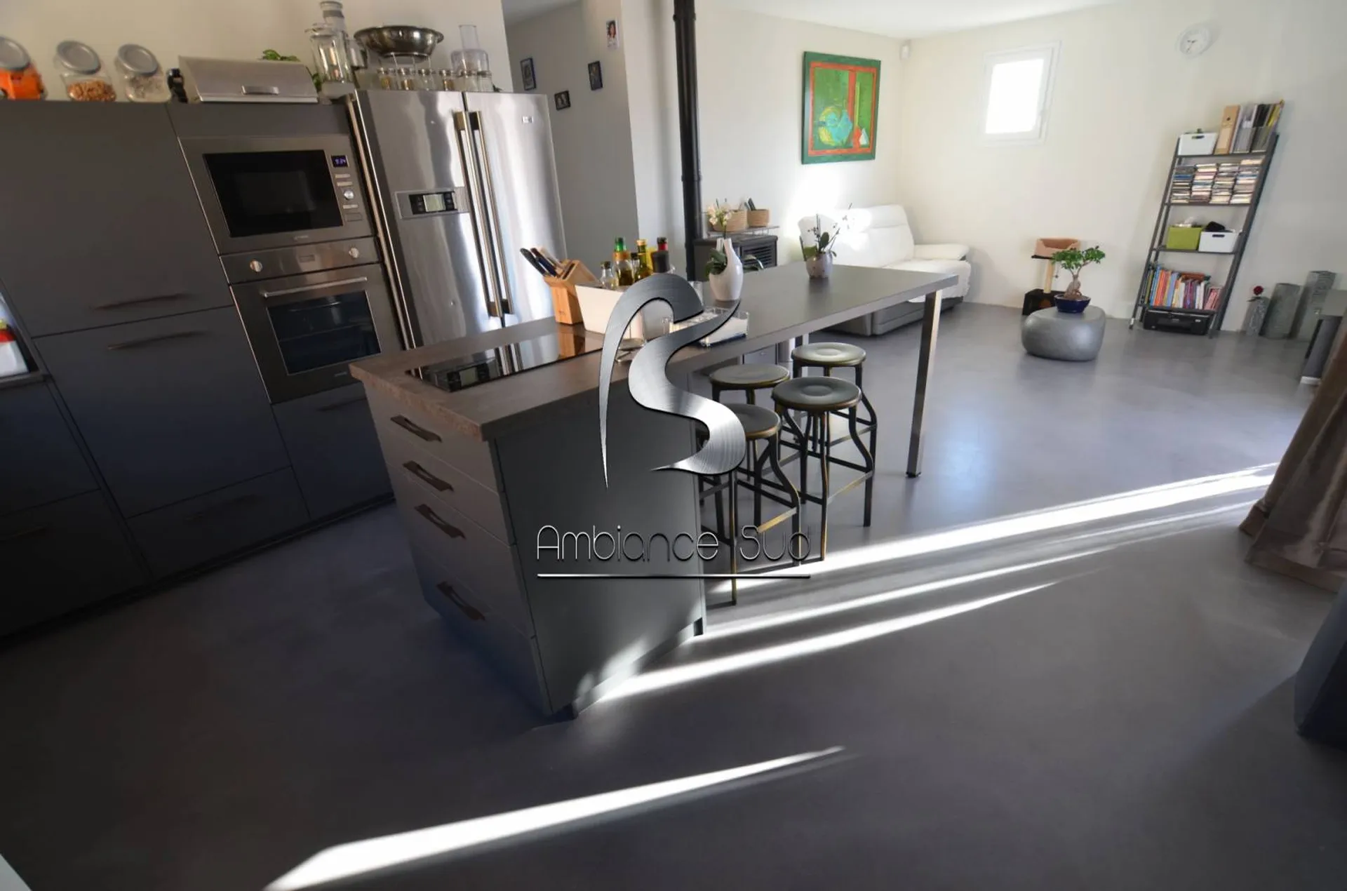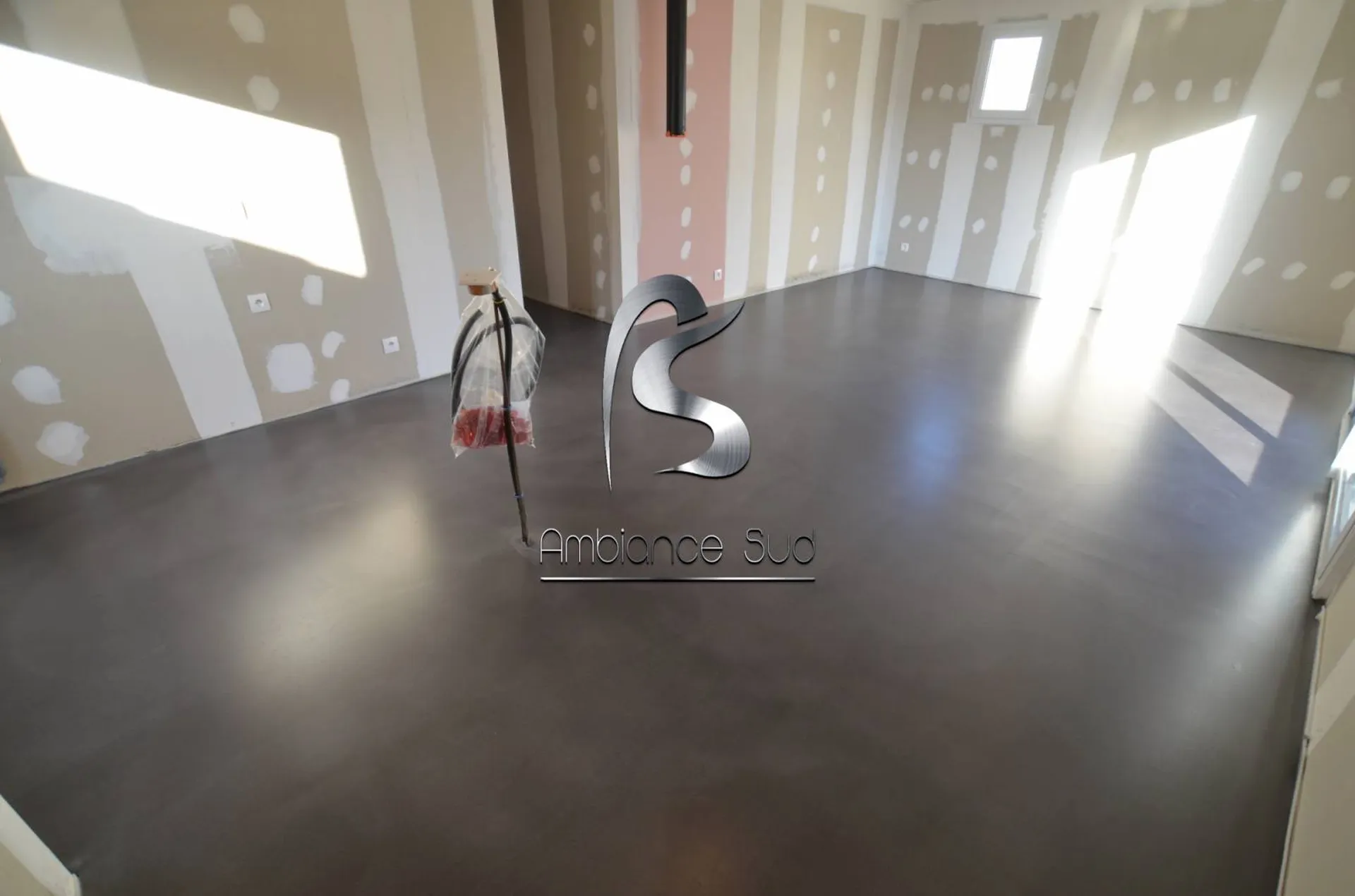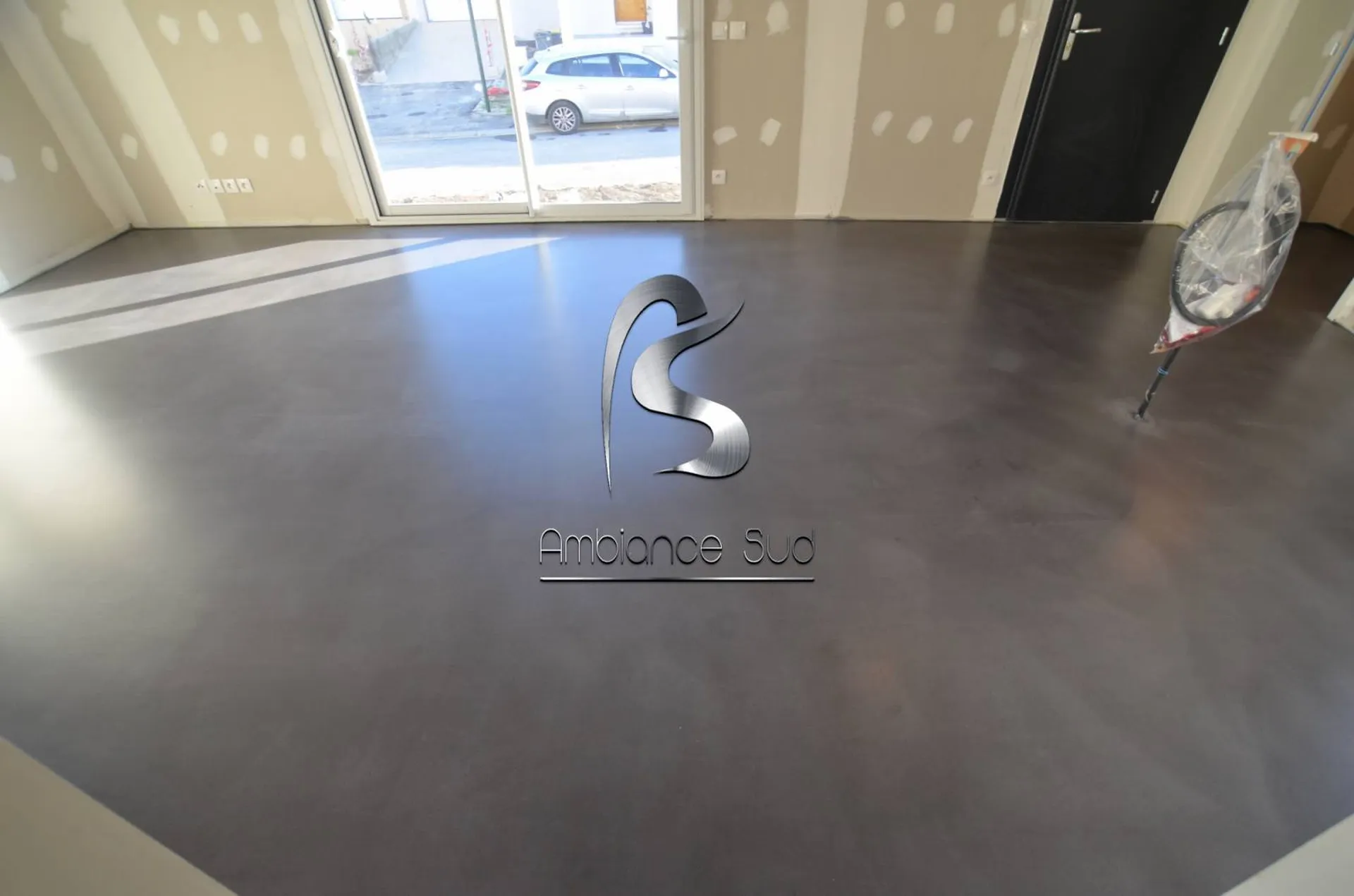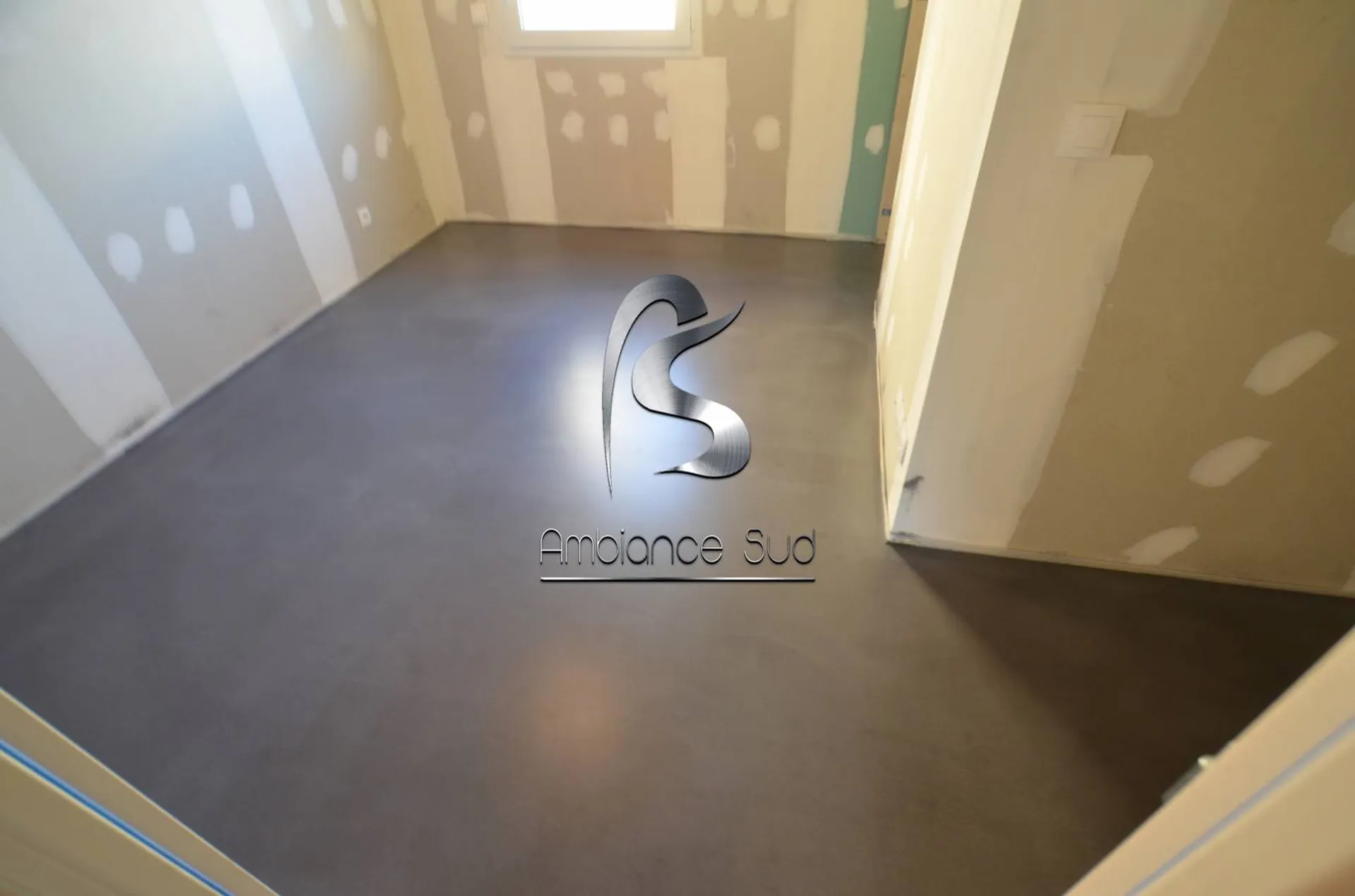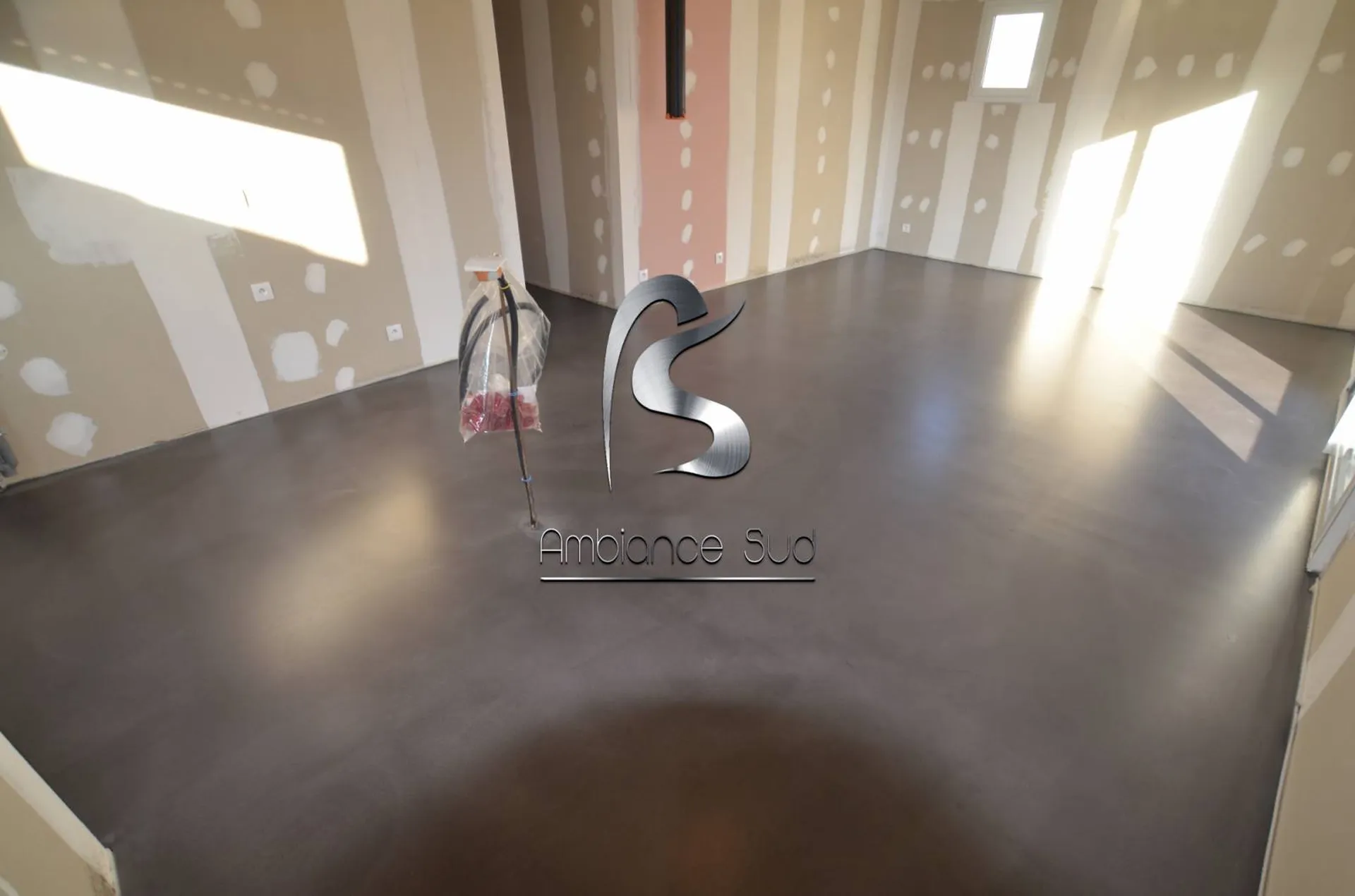 AMBIANCE SUD à rénover le sol d’une maison à SAINTE MAXIME avec un béton ciré décoratif le weber floor 4650 G60gris fonce.