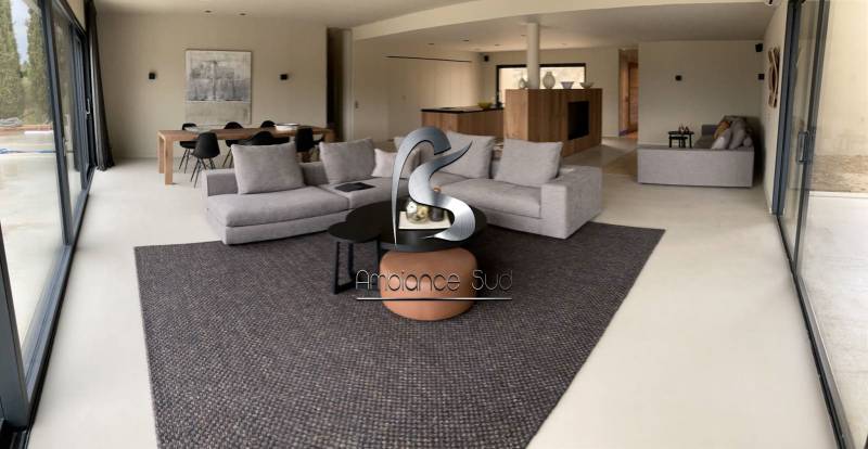 Dans le cadre d’une construction neuve d’une belle demeure au style design et contemporain à Saint Tropez, nous avons effectué la pose d’une couche d’usure industrielle, sur les sols intérieurs de toutes les pièces de vie :