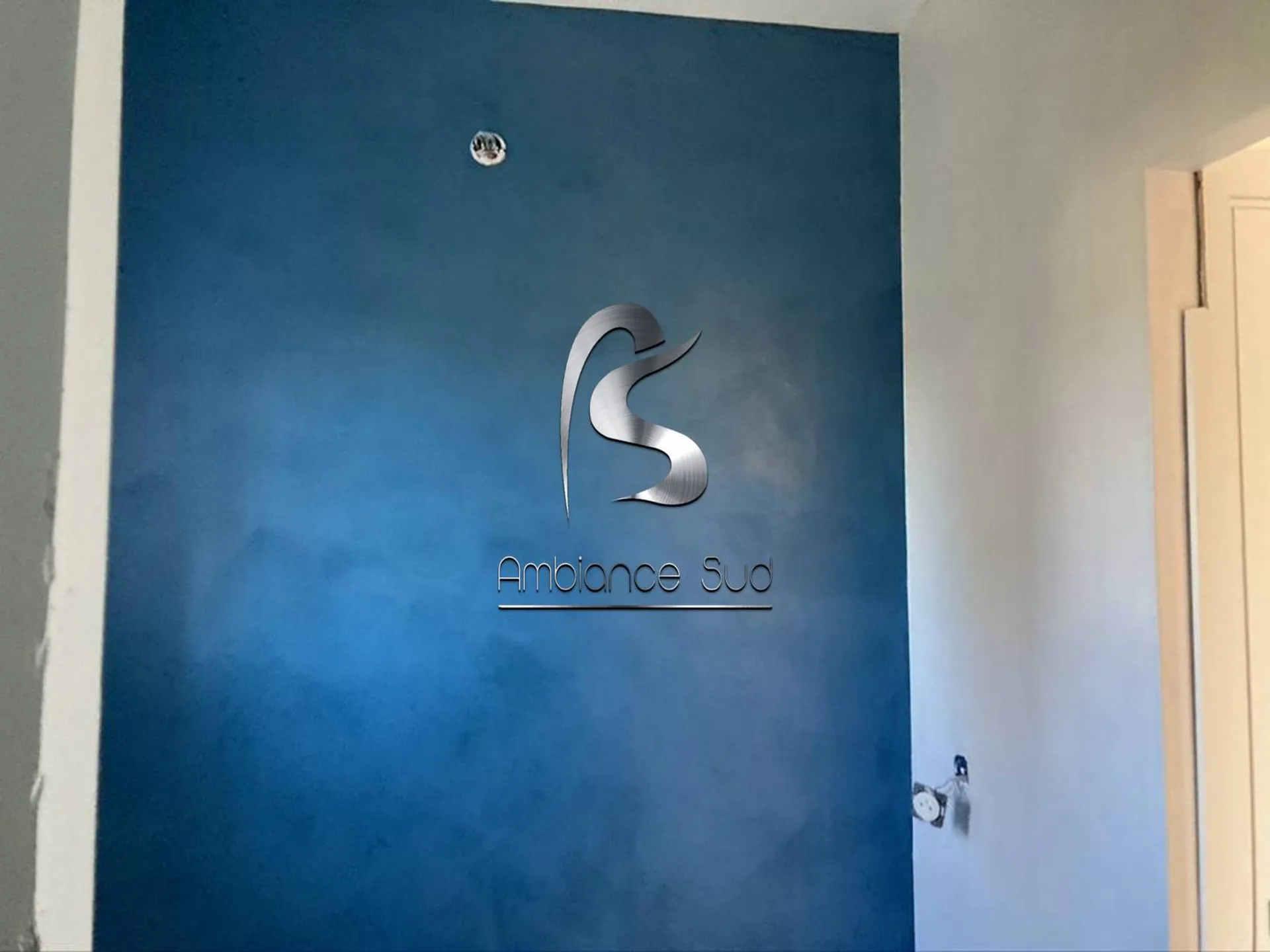 Nous avons réalisé cette application en béton ciré taloché sur mur et paroi de douche de la salle d’eau avec les produits d’AD Lucem de couleur blanche et bleu.