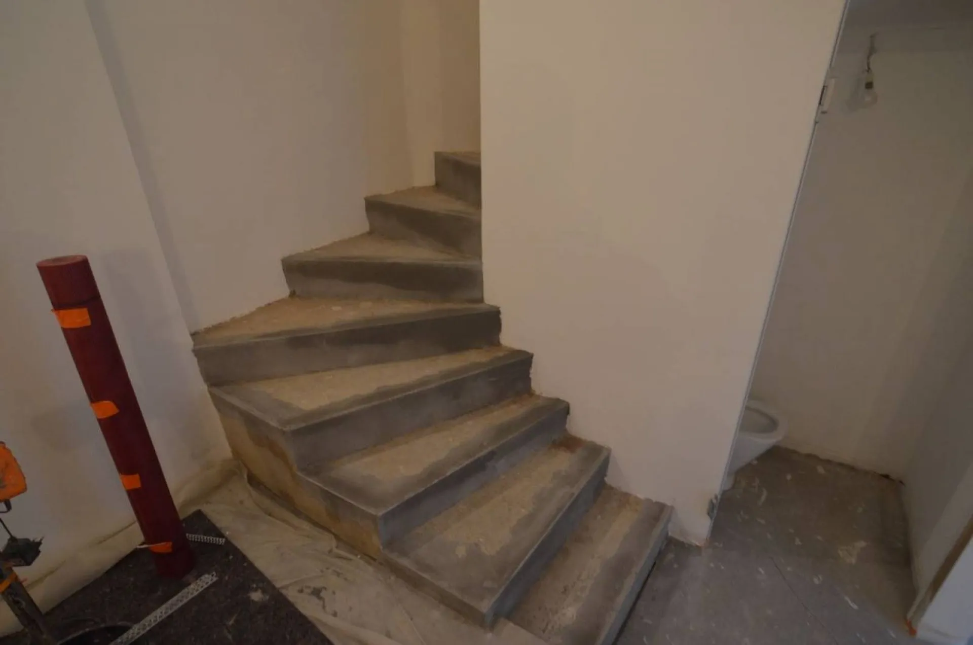 Le support a été préparé par un maçon, l'escalier doit être lisse sans trous , sans décalage de niveau car