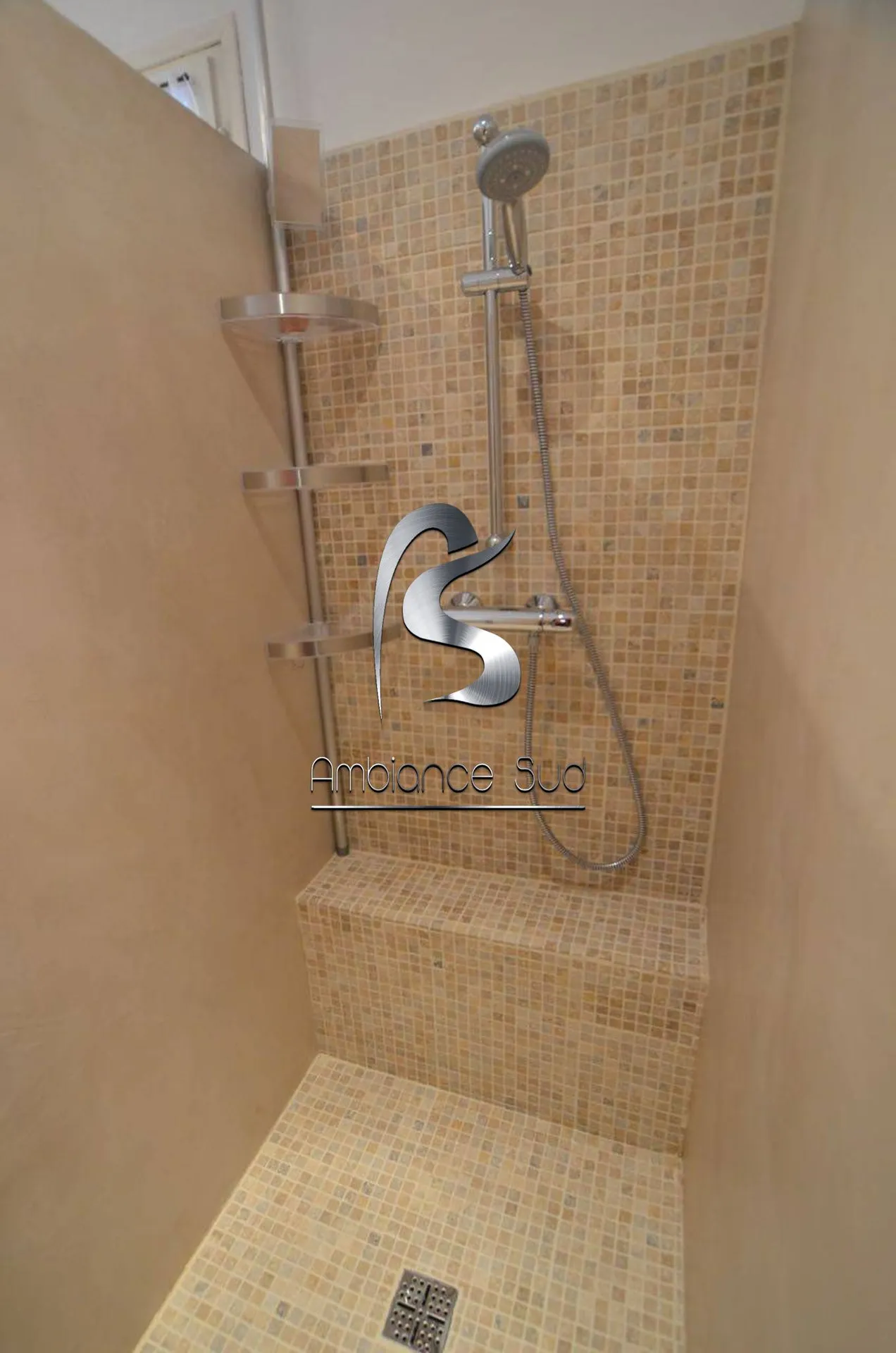 AMBIANCE SUD a rénové une ancienne salle de bain en béton ciré taloché d'une couleur lin sur un ancien support carrelage. Pour pouvoir réaliser le béton cire taloche, j'ai d'abord rayé le carrelage pour faire une accroche avec une rectifieuse et mi un primaire d'accroche spécifique aux carrelages. Pour pas voir le spectre des joints du carrelage, j'ai effectué une couche supplémentaire,ce qui représente en tout pour réaliser le béton cire taloche sur un carrelages 4 couches avec des ponçages entre couches et primaire.