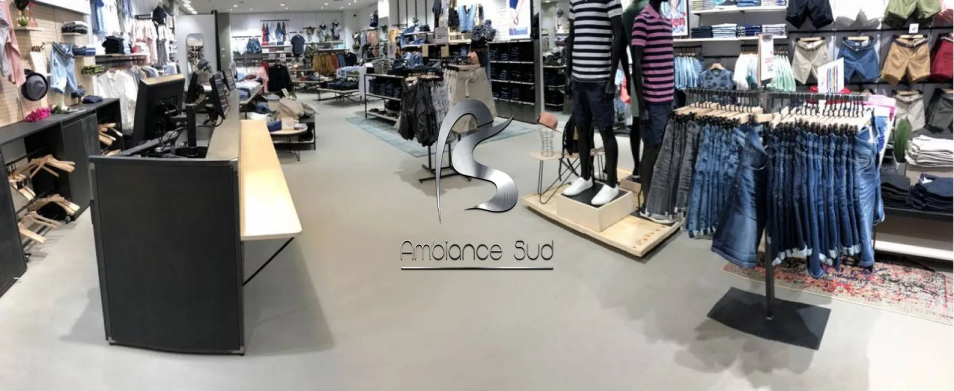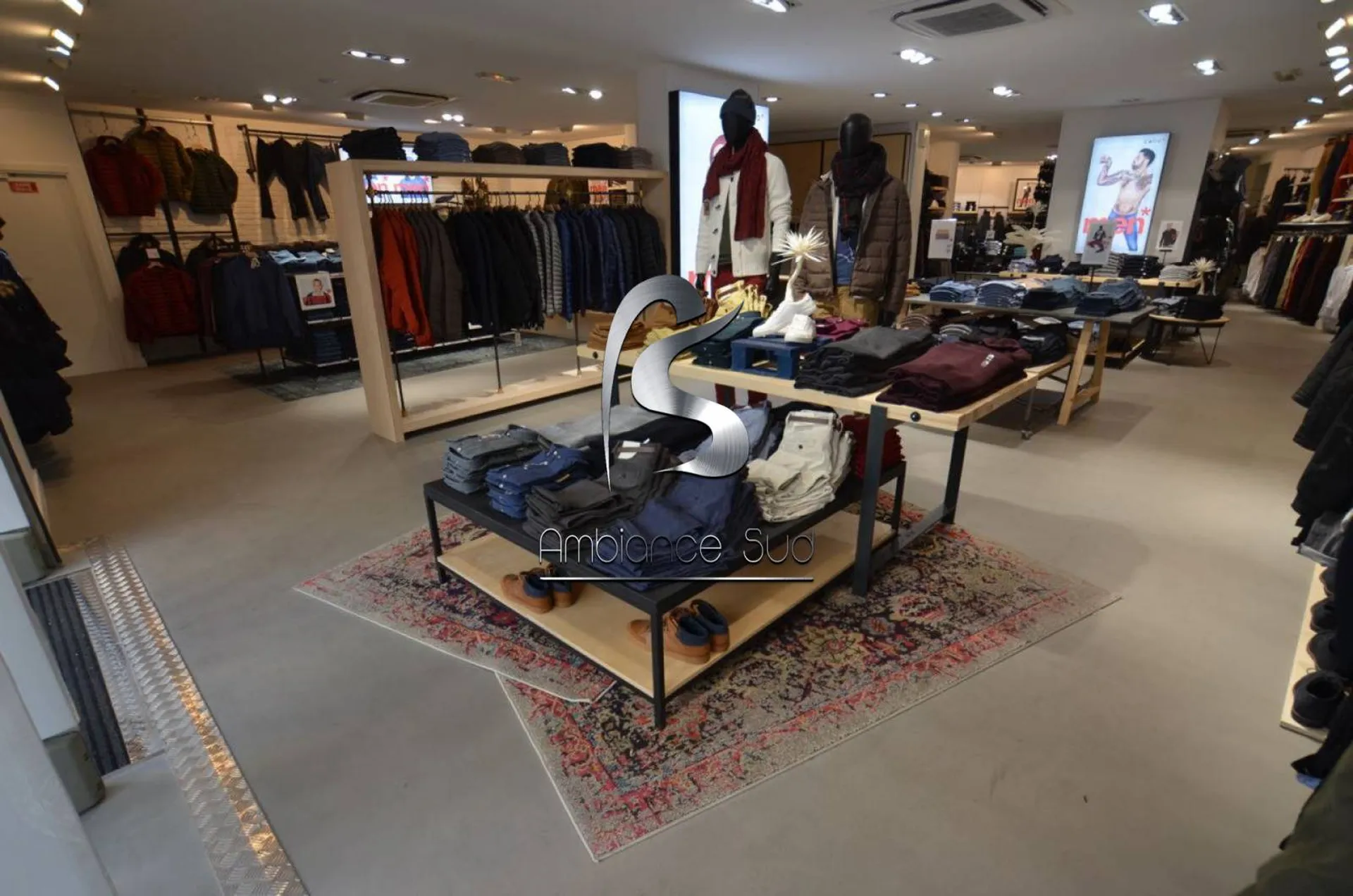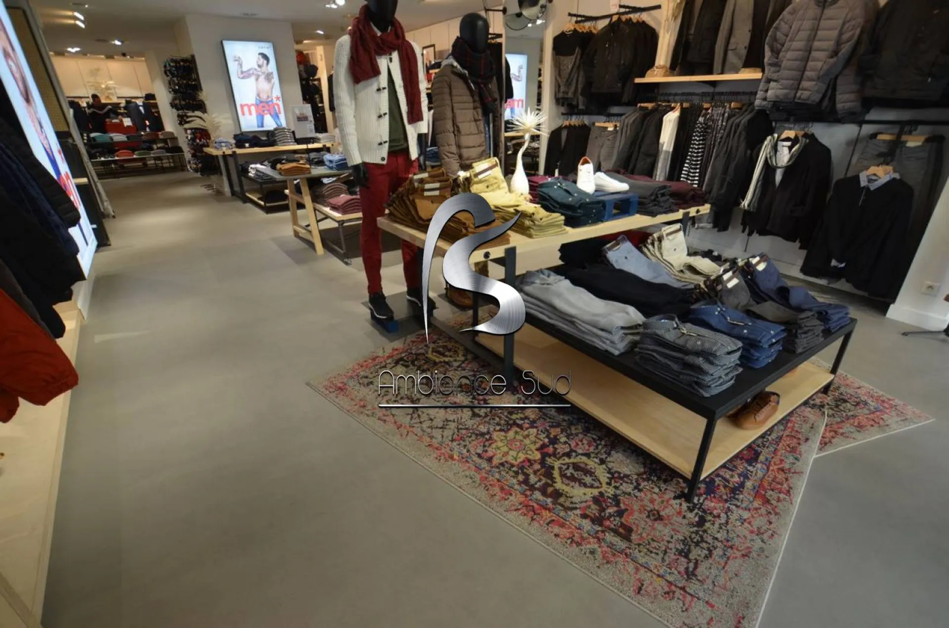 Sol décoratif avec une chape mince fibre ANTIBES 06AMBIANCE SUD à Rénover plusieurs magasins d'une grande marque de vêtements dans des lieux différents sur la Côte d'Azur (