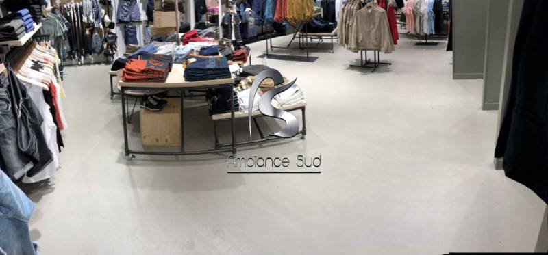 Sol décoratif avec une chape mince fibre ANTIBES 06AMBIANCE SUD à Rénover plusieurs magasins d'une grande marque de vêtements dans des lieux différents sur la Côte d'Azur (