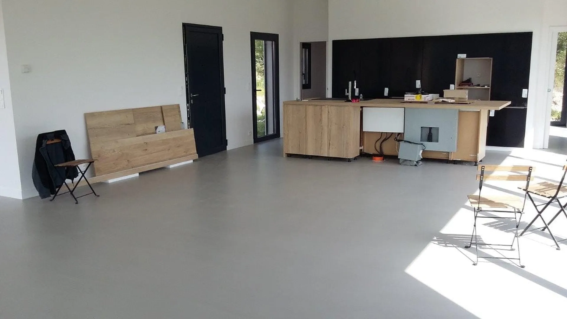 SOL EN BÉTON CIRÉ COULE AVEC UNE CHAPE MINCE FIBRE TEINTE A GEMENOS 13