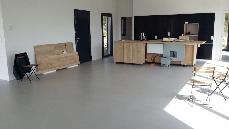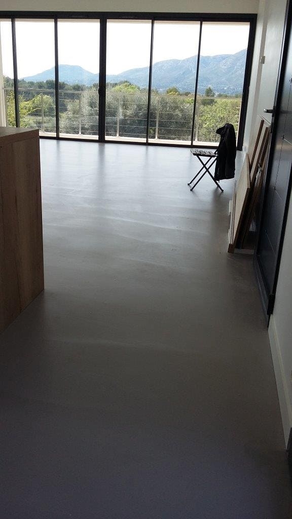 > SOL EN BÉTON CIRÉ COULE AVEC UNE CHAPE MINCE FIBRE TEINTE A GEMENOS 13