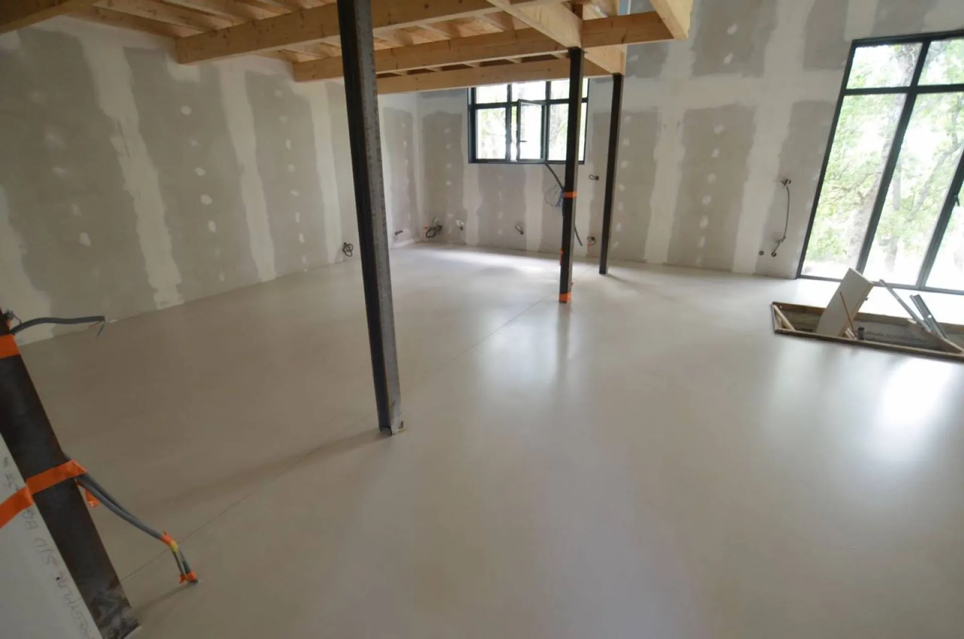 J'ai réalisé un béton ciré coulé décoratif avec une couche d'usure industriel teinté à FORCALQUIER à coté de Manosque.