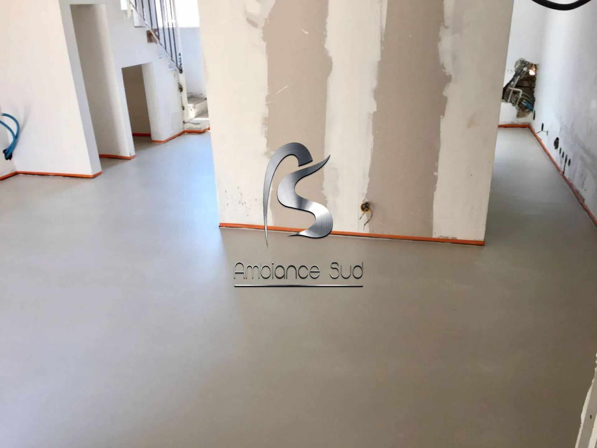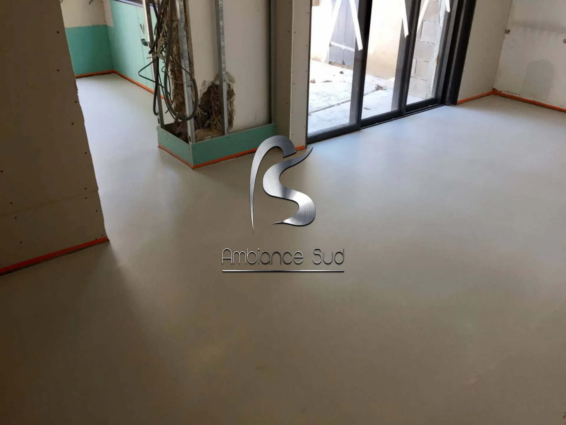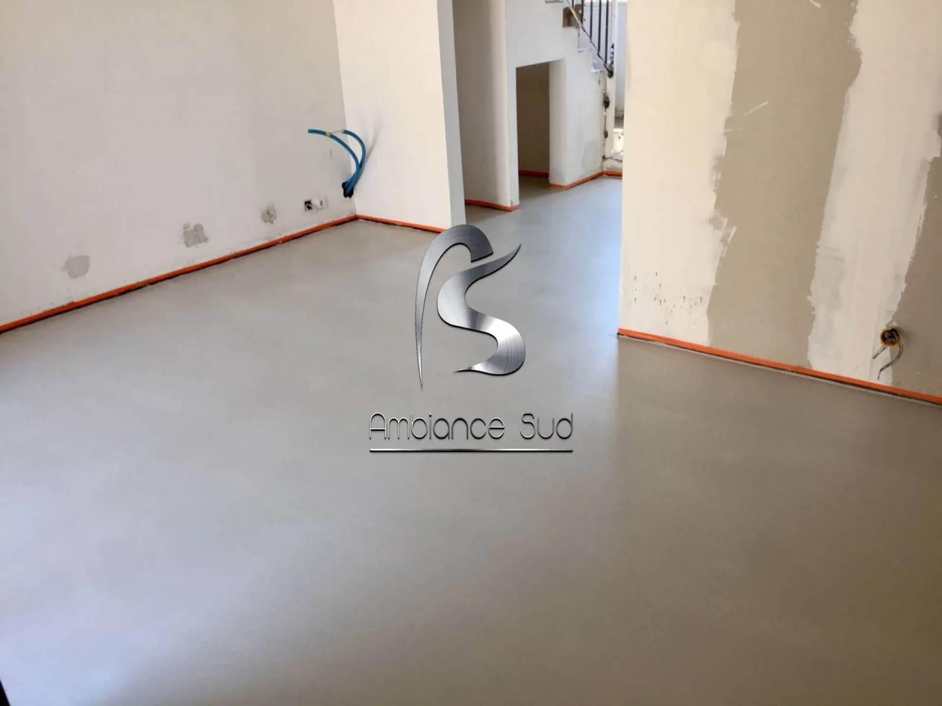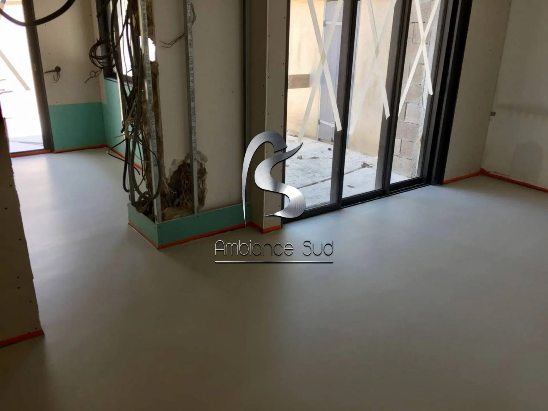 AMBIANCE SUD a effectué une préparation normale . J'ai passé un primaire poreux en deux passes et une trame en fibre de verre avec une résine epoxy pour les zones ou il y avait des saignées ou passer les câbles électrique pour la mise en place du béton cire coule industriel teinte. J'ai pose le weber floor 4630 teinte sur une épaisseur de 7 à 8 mm avec un vernis en finition semi mat.