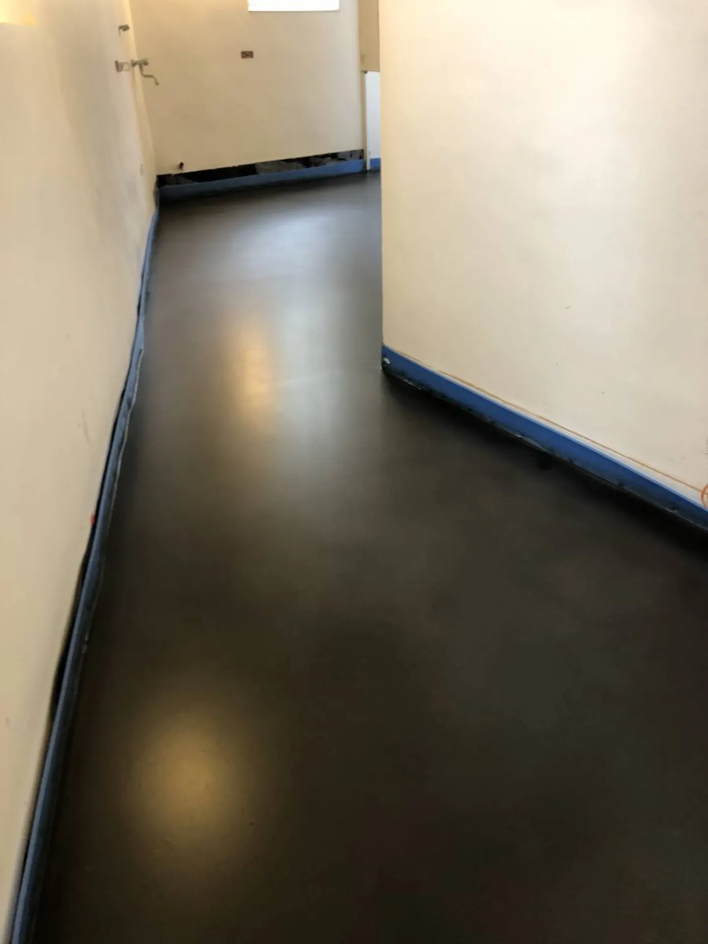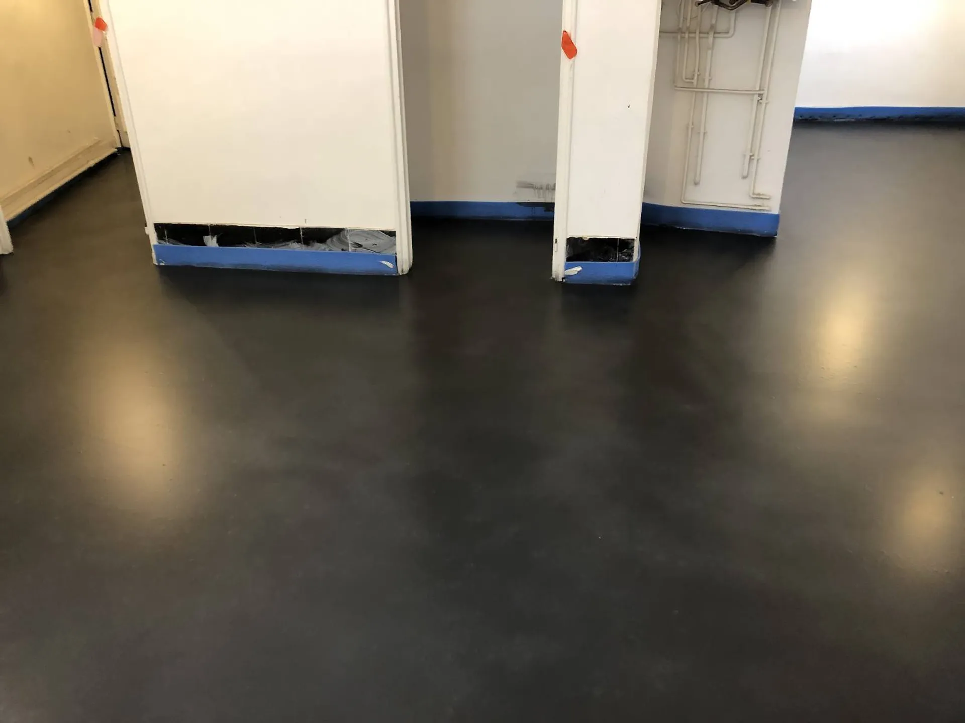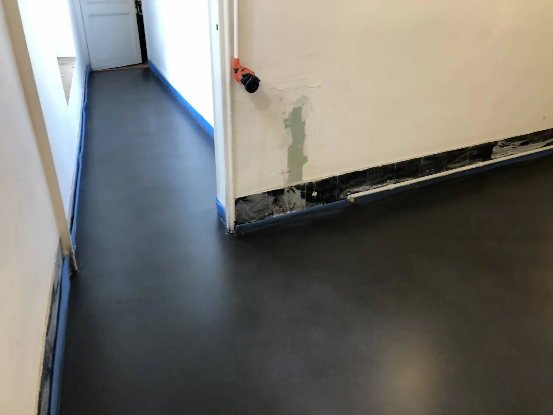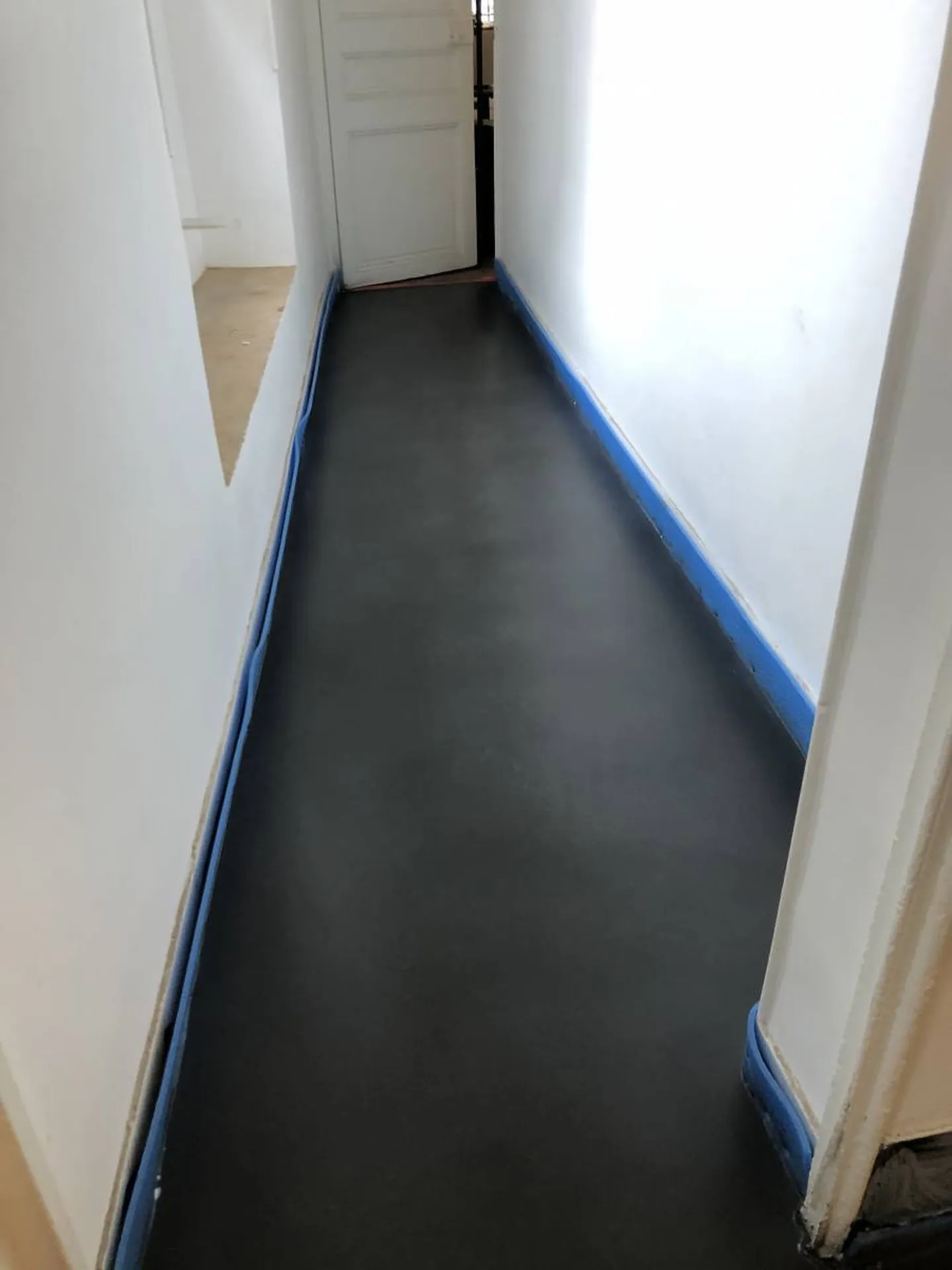 Pour ces clients, propriétaires d’une maison à rénover, nous avons effectué une application sur sol en béton ciré coulé noir.