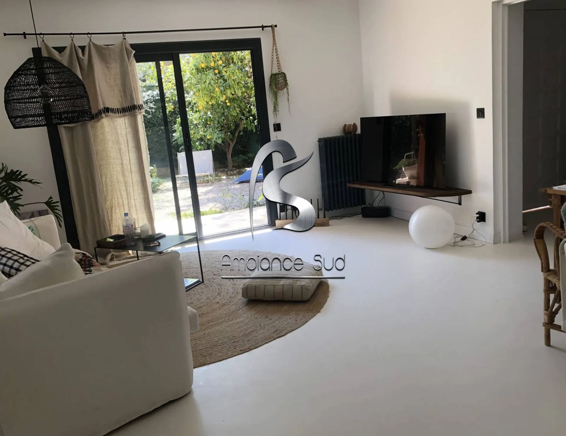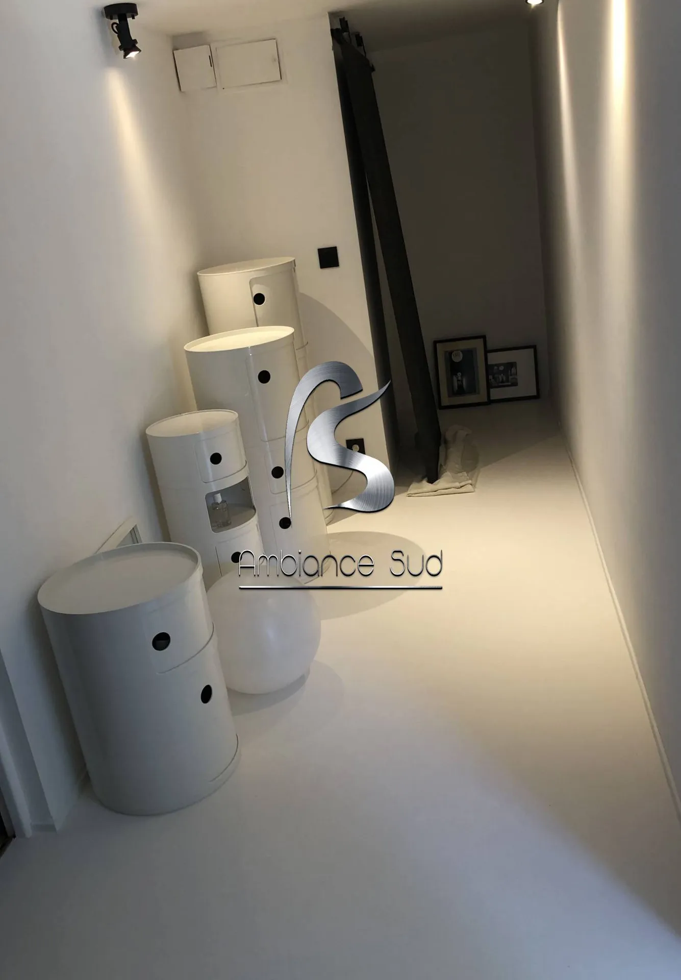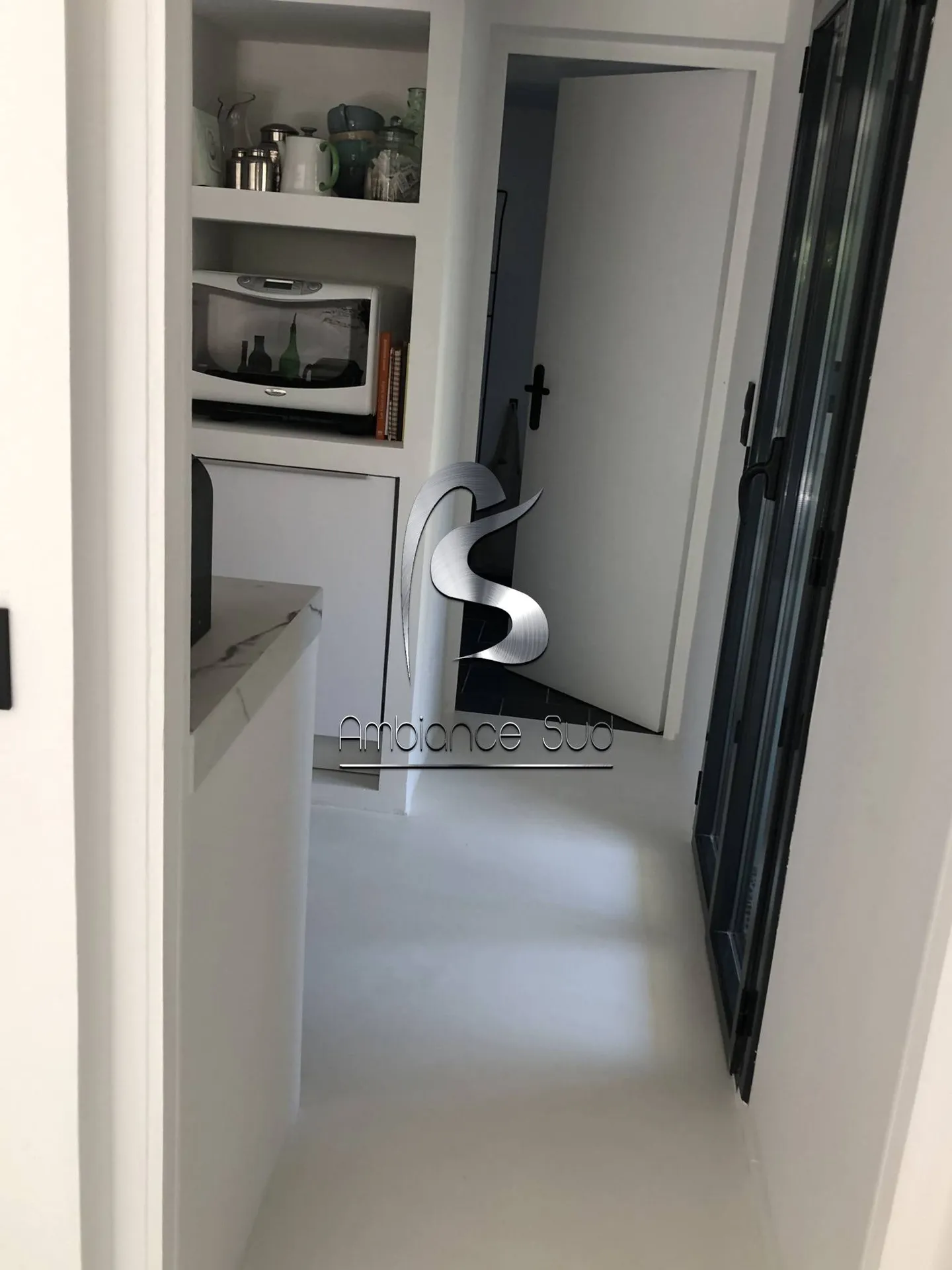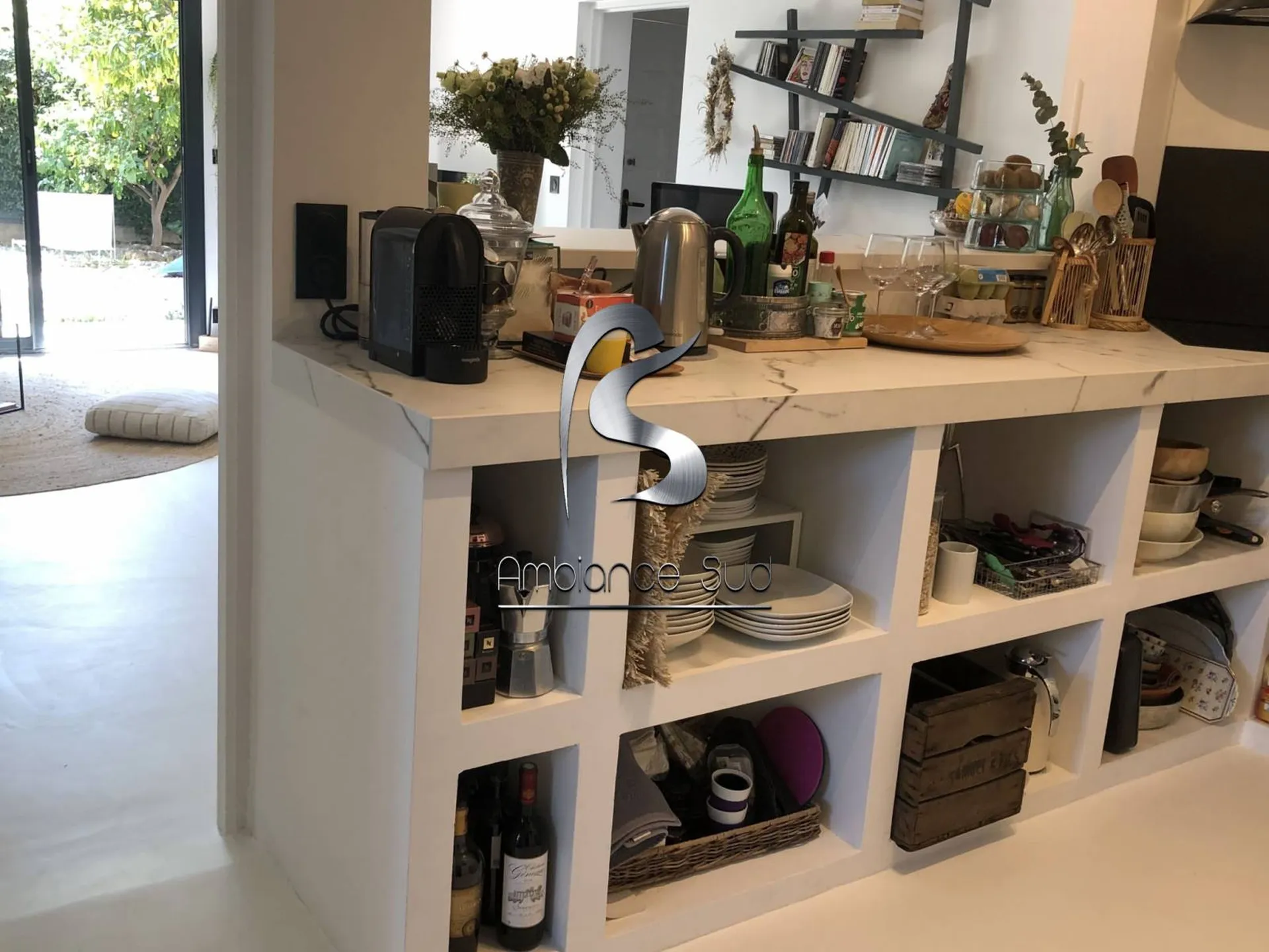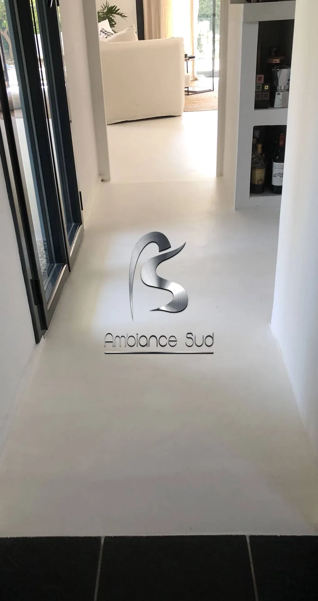 SOL EN BETON CIRE TALOCHE A CASSIS 13AMBIANCE SUD à réaliser la rénovation d'un salon cuisine à