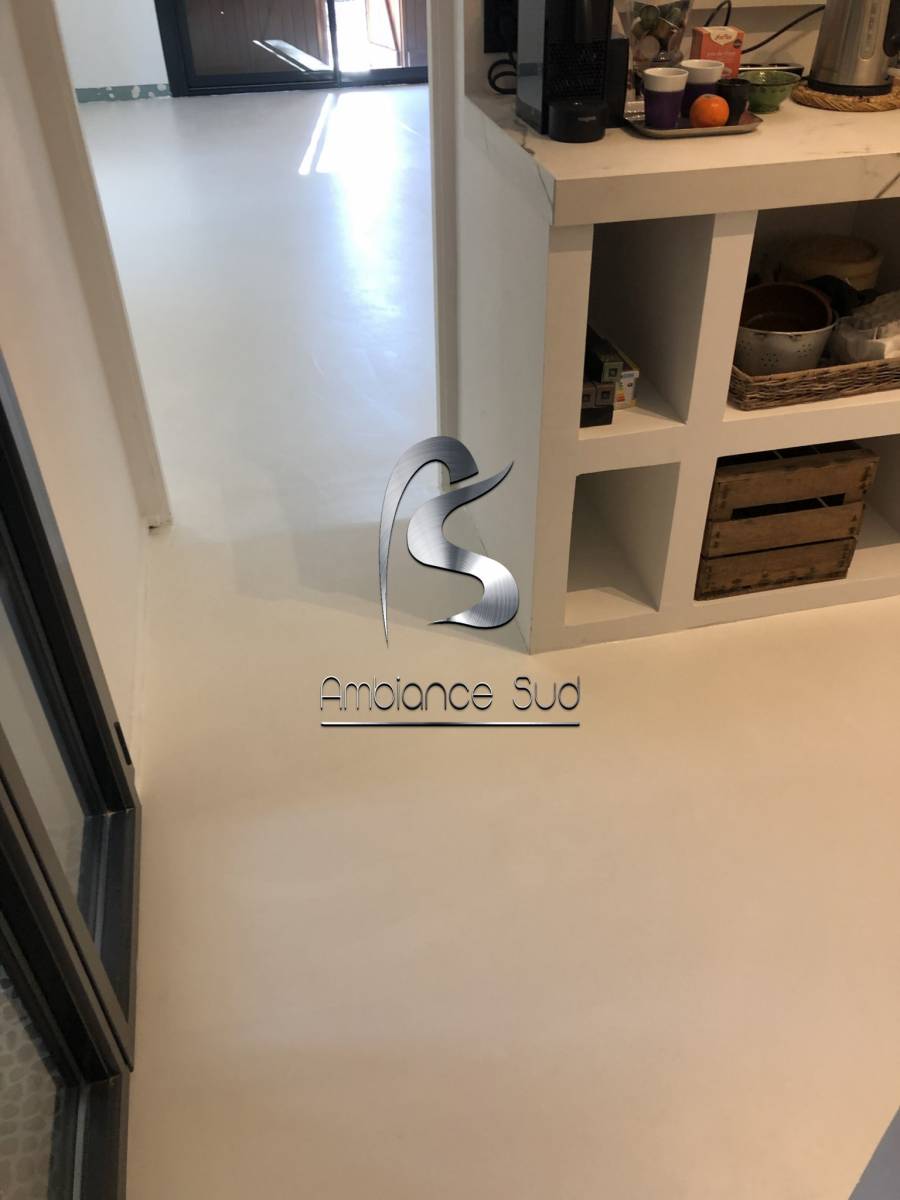 SOL EN BETON CIRE TALOCHE A CASSIS 13AMBIANCE SUD à réaliser la rénovation d'un salon cuisine à