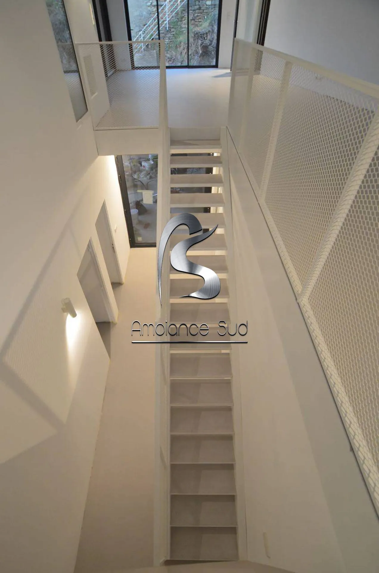 béton ciré taloché AD LUCEM de couleur gris clair, référence ZINC, dans cette maison nous avons fait les sols, l'escalier, et la