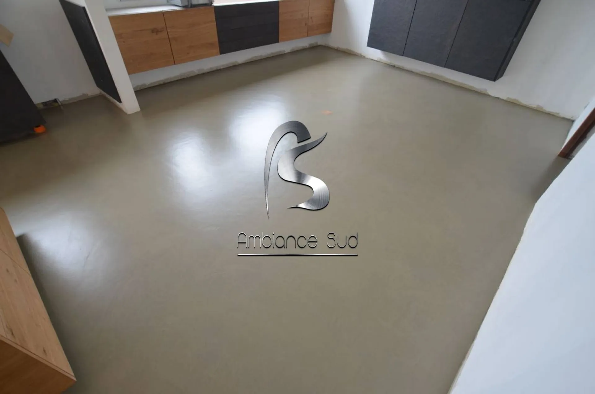 AMBIANCE SUD a posé un béton cire taloche dans une maison en rénovation à Manosque sur une chape fluide en ciment.
