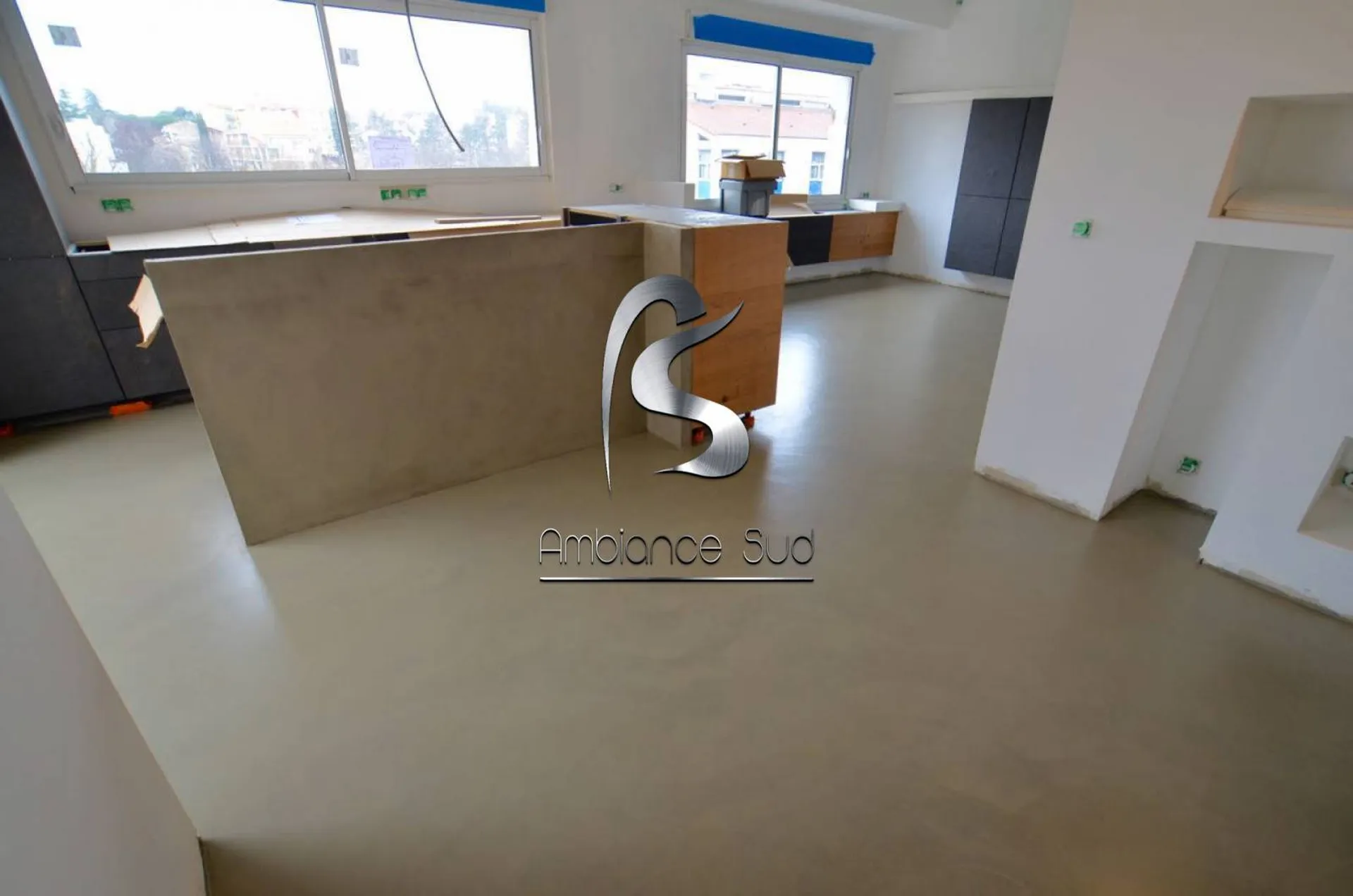 La pose c'est effectuée dans la ville de Manosque, nous avons applique en 3 passes de béton ciré taloche AD LUCEM, avec un ponçage entre couche et une couche de primaire à chaque fois. Sur le beton cire taloche nous avons appliqué trois couches de vernis semi mat sur ce chantier mais vous avez également le choix entre un vernis semi mat ,satine ou brillant.