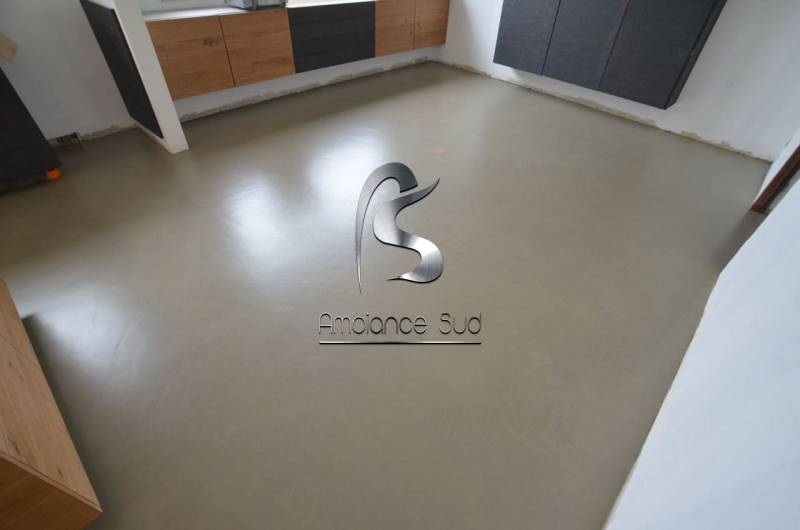 Manosque, nous avons applique en 3 passes de béton ciré taloche AD LUCEM, avec un ponçage entre couche et une couche de primaire à chaque fois.