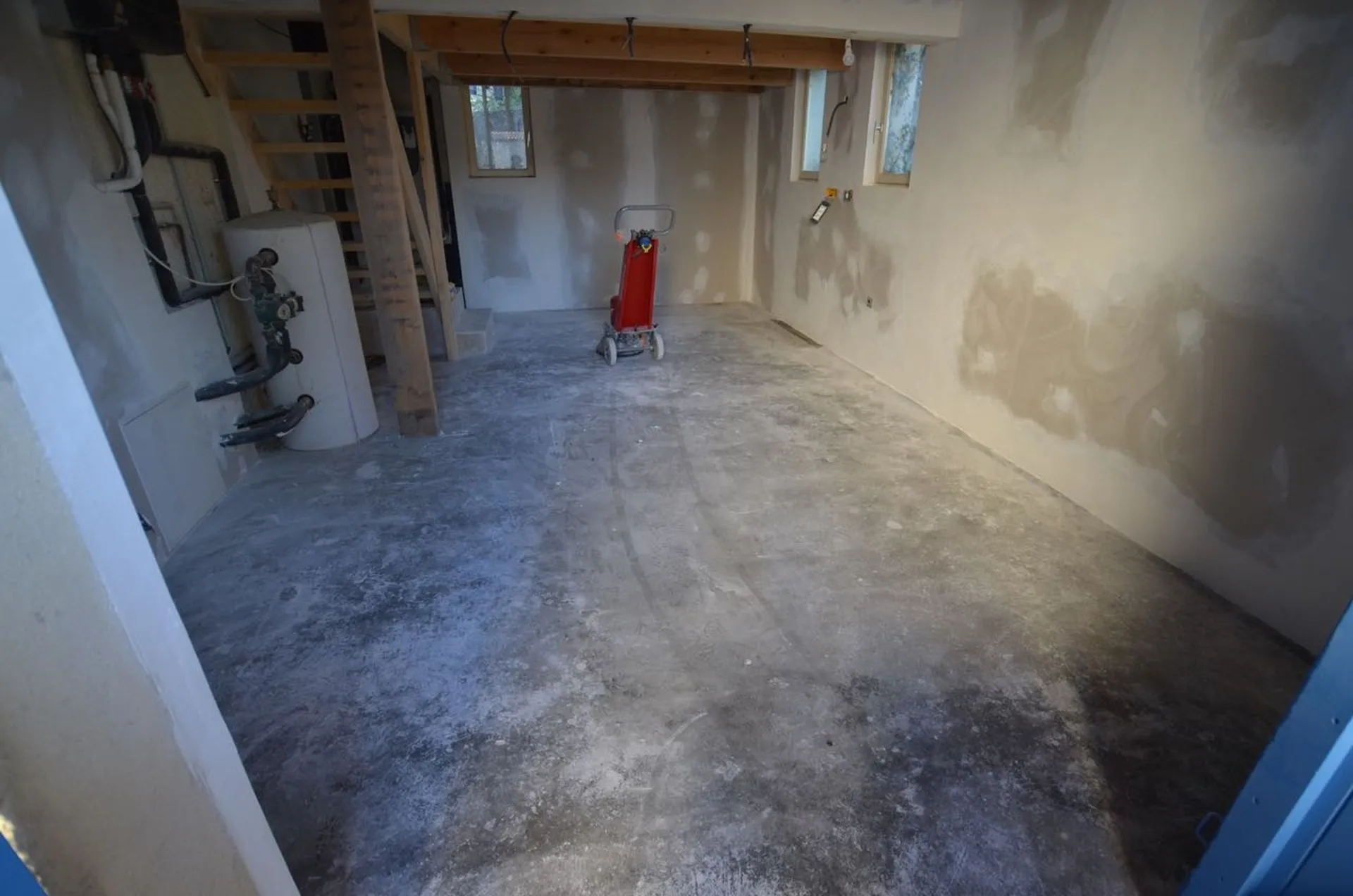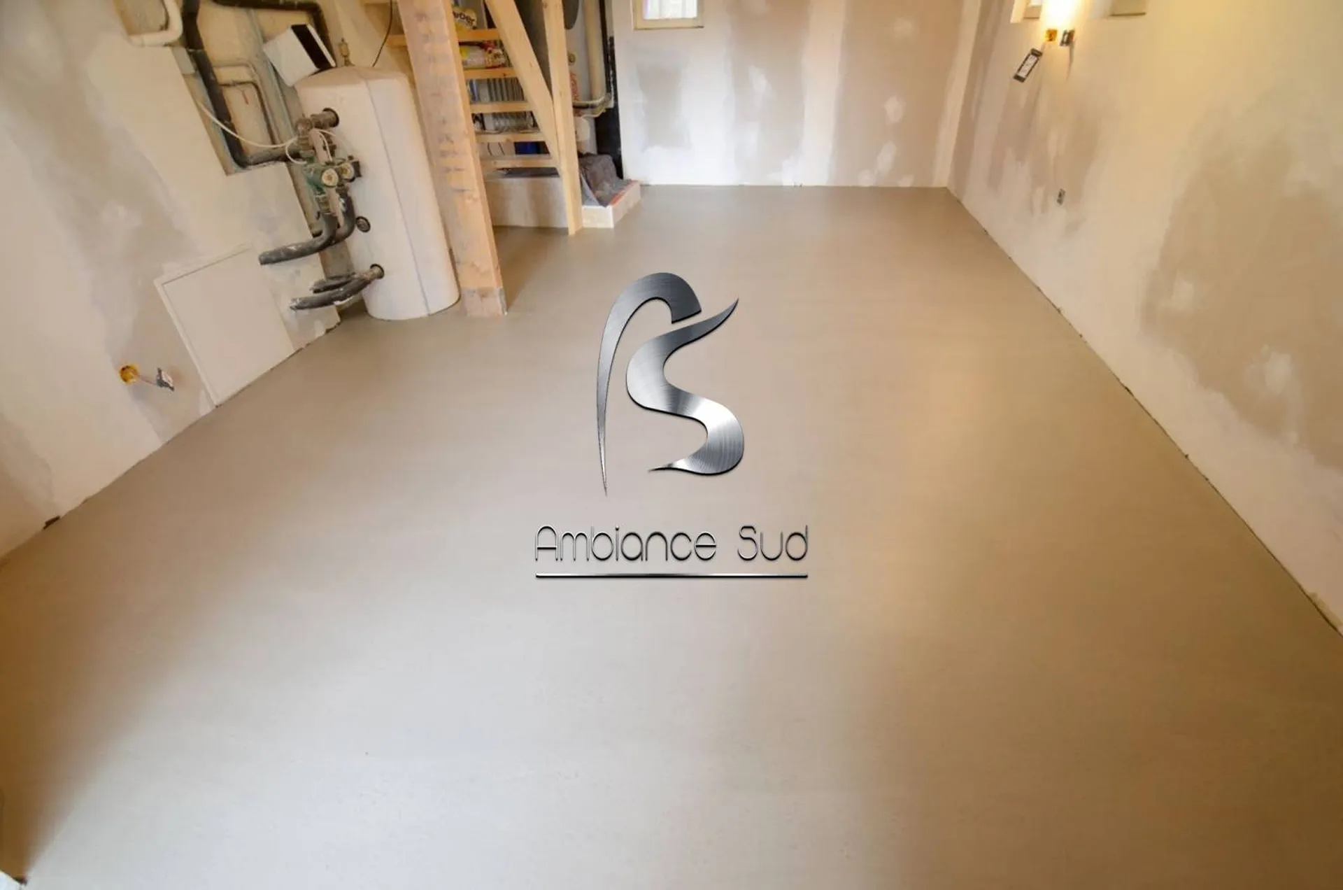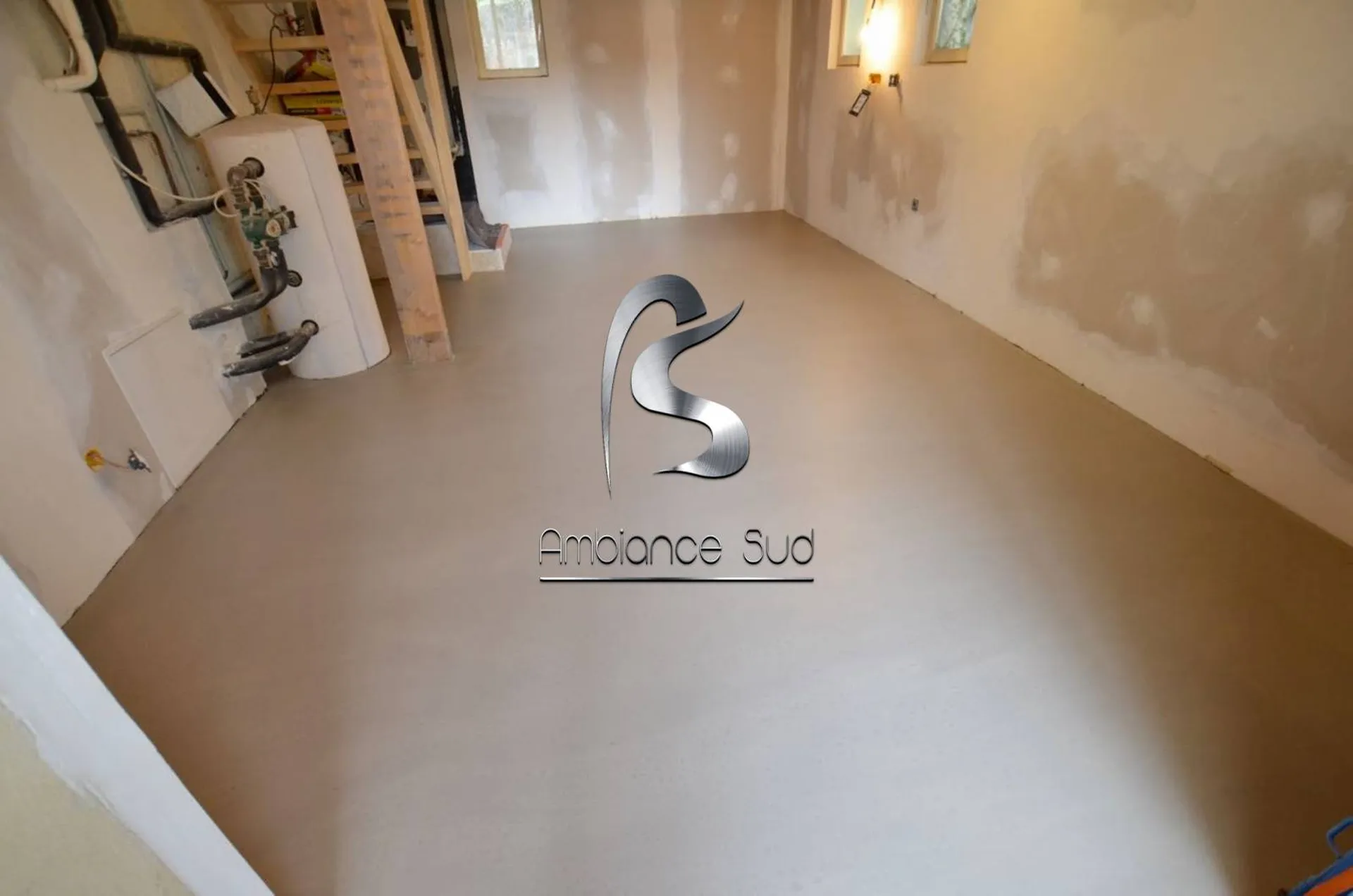 AMBIANCE SUD a réalisé le sol d'un garage en couche d'usure d'intérieur teinté en beige pour une future transformation en bureau sur la ville de Manosque dans les Alpes De Haute Provence.