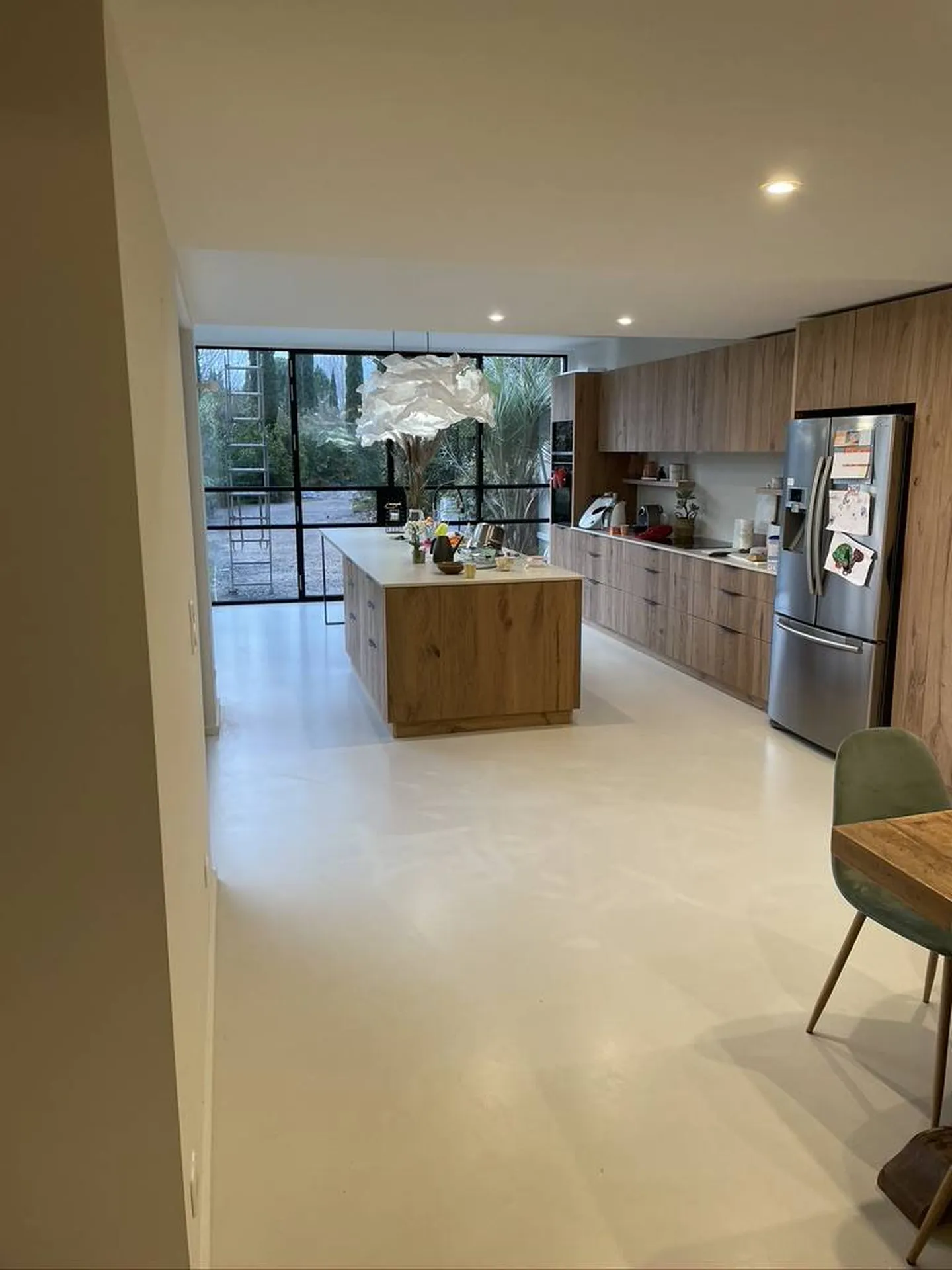 Le propriétaire de cette maison à Hyères dans le Var souhaitait un îlot de cuisine moderne et a fait appel à notre entreprise pour la pose d’un béton ciré taloché.